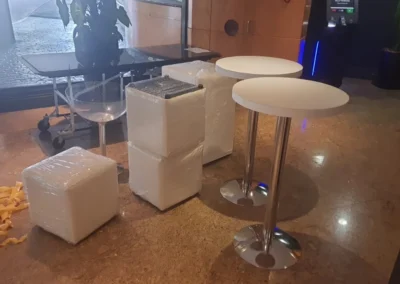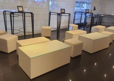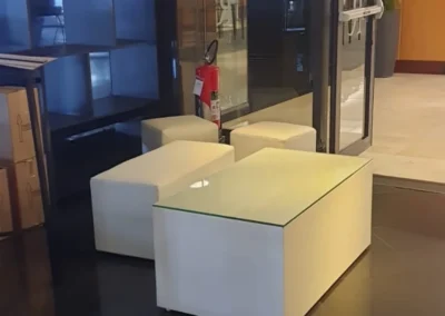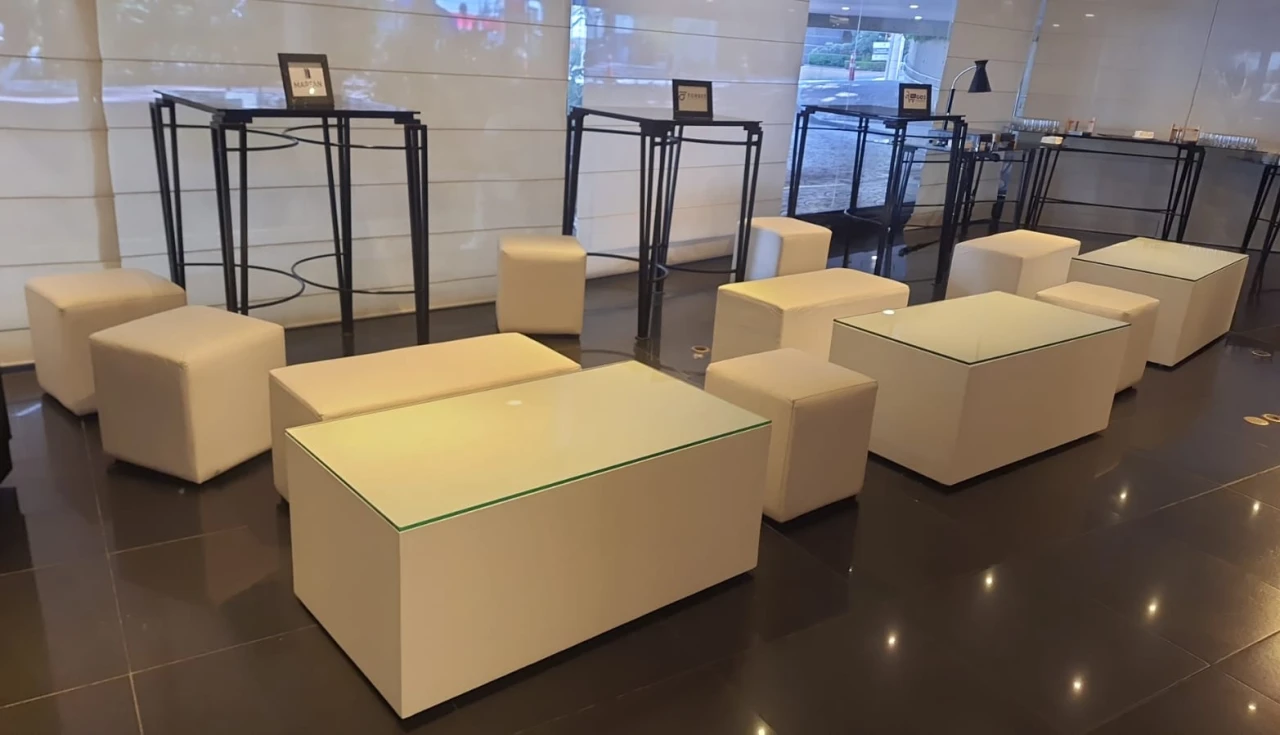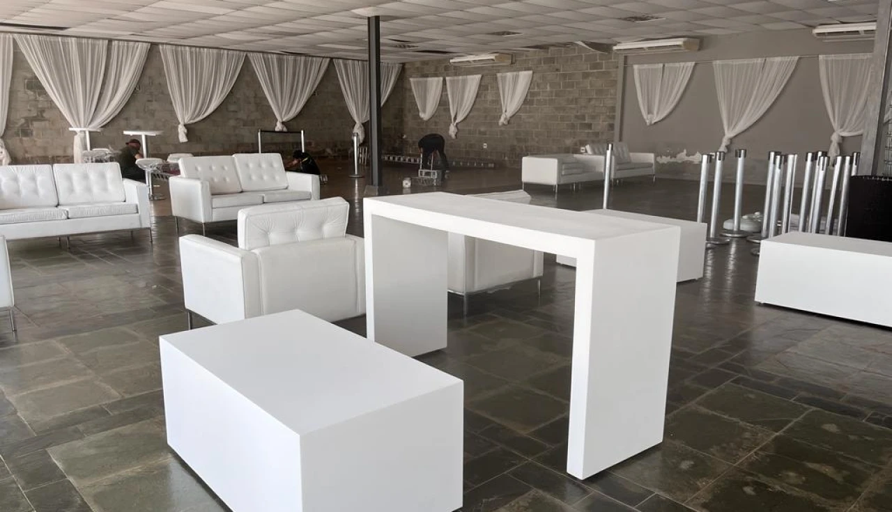 Alugue móveis modernos com design superior e garanta praticidade com uma estrutura completa para stands, festas, shows e confraternizações.